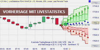 Nutzen Sie LiveStatistics Forward View als Realitätscheck für mögliche Kursverläufe und schätzen Sie nach wiederkehrenden Mustern Wahrscheinlichkeiten, Handelsspannen sowie Risiko und Zielbereiche besser ein. Mehr...