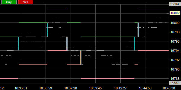 Renko Plus Charts werden auch von Scalpern und sehr kurzfristig orientierten Tradern eingesetzt. In einem Scalping-Beispiel sind alle im Markt gehandelten Ticks zwischen den Renko Bricks sichtbar.